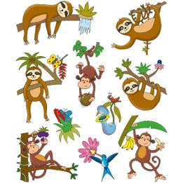 Produktinformationen "Buntes Fensterbild "Dschungeltiere" - 10 Etiketten auf 1 Bogen"