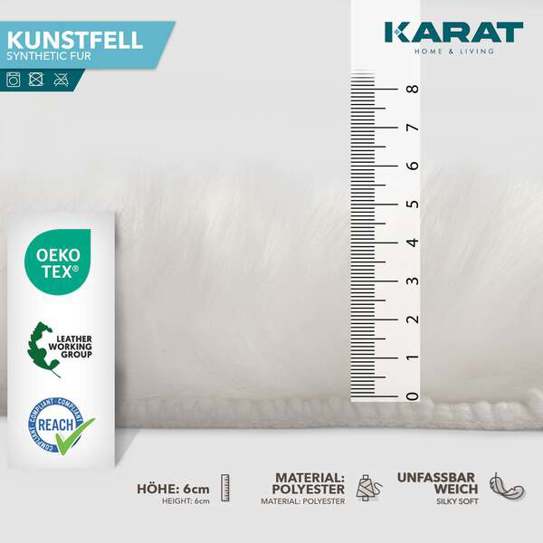 Das spezielle Material aus formstabilen Polyesterfasern sorgt nicht nur für einen besonders angenehmen Griff, sondern verleiht dem Kunstfell auch eine nachhaltig schöne Optik. Der hochwertig gekettelte Saum verhindert das Ausfransen und sorgt dafür, dass Sie lange Freude an Ihrem neuen Lieblingsstück haben. Dank der pflegeleichten Eigenschaften können Sie das Fell problemlos in der Waschmaschine bei 30 Grad reinigen – so bleibt es auch nach vielen Waschgängen flauschig und einladend.