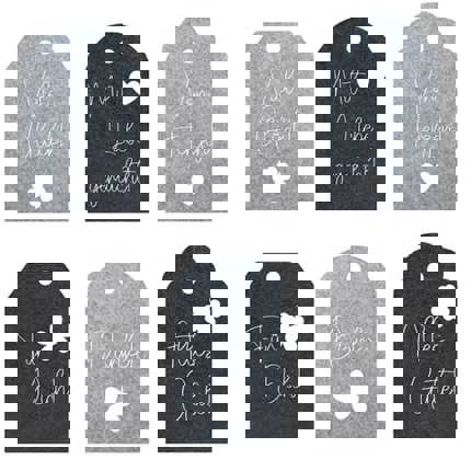 Verleihen Sie Ihren Geschenken mit unseren stilvollen Geschenkanhängern aus Filz eine persönliche Note. Diese Anhänger sind in einem modernen Hellgrau und Dunkelgrau gehalten und begeistern durch ihre liebevollen Sprüche und Glückwünsche, die sich ideal für jede Geschenkverpackung eignen.