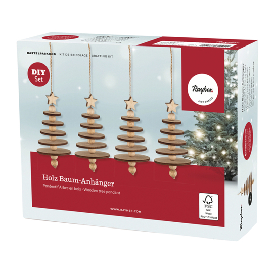 Produktinformationen "Holz Baum-Anhänger – FSC Mix Credit – 4,7x4,7x10,5 cm – 4 Stück – Natur"