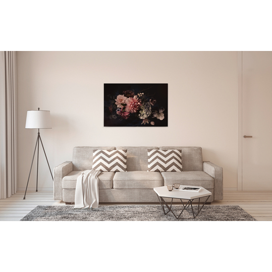 Produktinformationen "Leinwandbild 'Blossom Variety 1' - Blumen in Rosa und Schwarz - 90 cm x 60 cm"