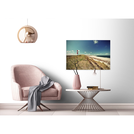 Verleihen Sie Ihrem Zuhause mit unserem Leinwandbild eine frische, maritime Note! Das beeindruckende Kunstwerk zeigt eine harmonische Komposition aus sanften Blau- und Grüntönen, die das Gefühl von Strand und Meer perfekt einfangen. Mit einem großzügigen Format von 90 cm x 60 cm ist es ideal, um jedem Raum eine einladende Atmosphäre zu verleihen. Hergestellt aus hochwertiger Leinwand auf einem stabilen Keilrahmen, überzeugt es nicht nur durch seine ansprechende Optik, sondern auch durch seine Langlebigkeit. Die glatte Canvas-Oberfläche sorgt für lebendige Farben und eine beeindruckende Detailtreue. Lassen Sie sich von der beruhigenden Ausstrahlung dieses traumhaften Bildes inspirieren und verwandeln Sie Ihre Wände in eine Galerie der Entspannung und Schönheit.