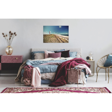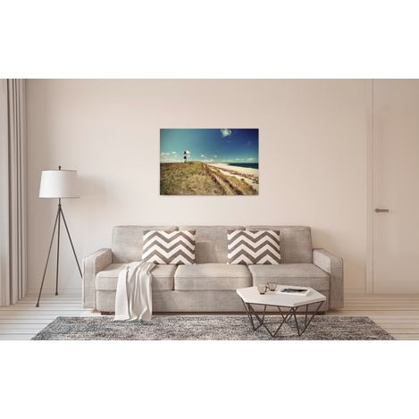 Leinwandbild "Lighthouse am Strand" - Meer, Blau & Grün - 90 x 60 cm - Nordsee