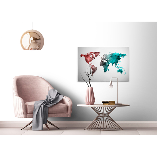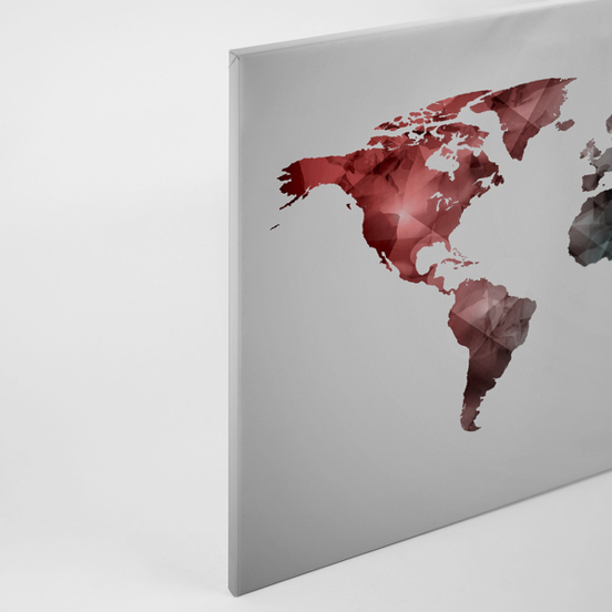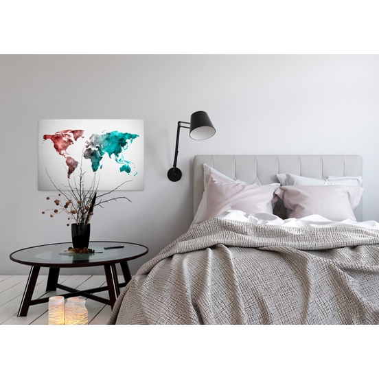 Leinwandbild WorldGraphic2 - Farbiges Weltkarten-Motiv in Blau und Rot (90 cm x 60 cm) | Art.-Nr. 120342