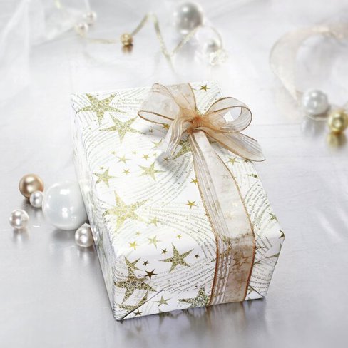 | Herstellerproduktbeschreibung: | Weihnachts-Geschenkpapier SIGEL Dancing Stars, weiß/gold, 80 g/m², Ø 35 mm, Weißpapier, 5 m x 70cm |
